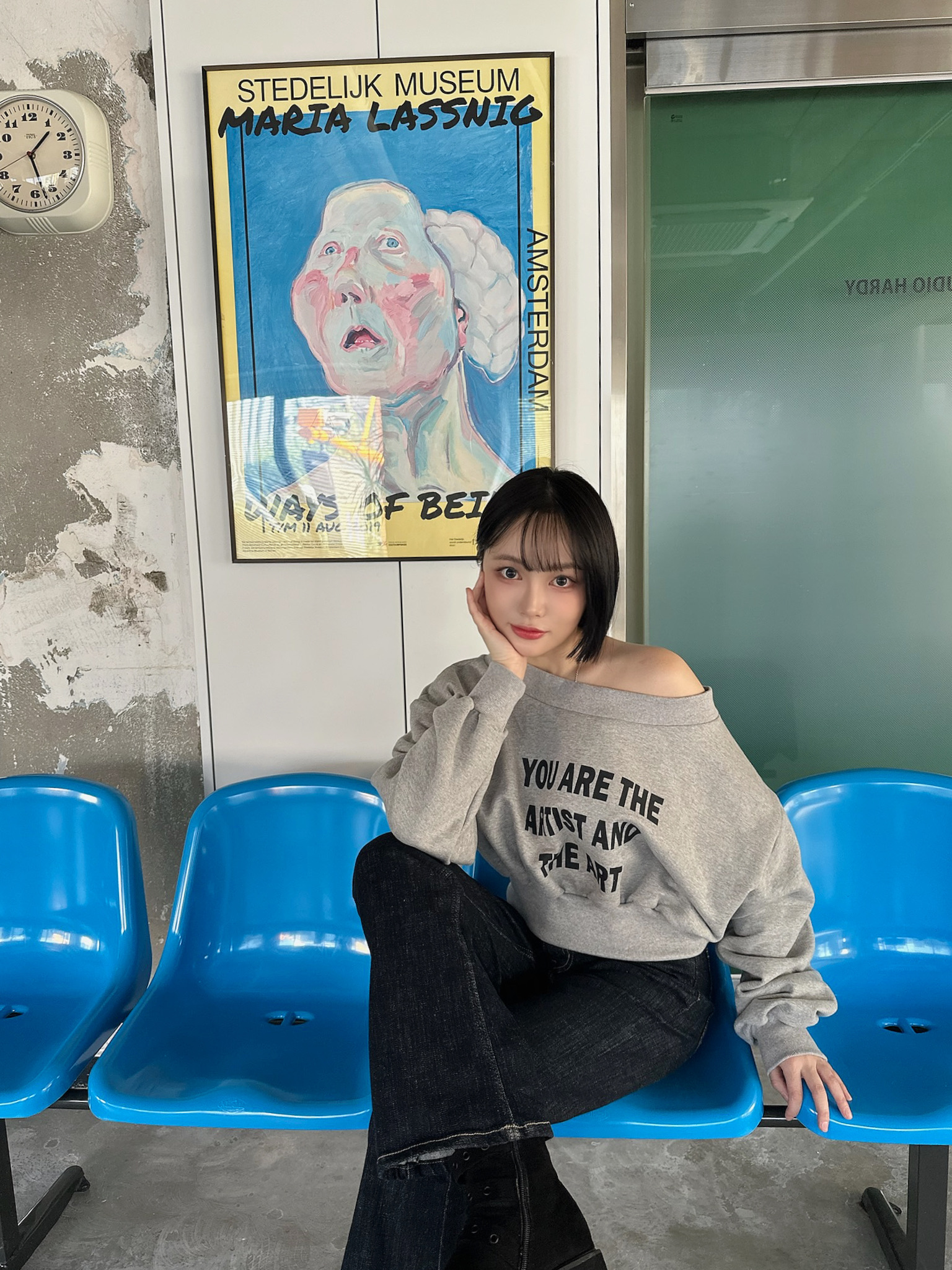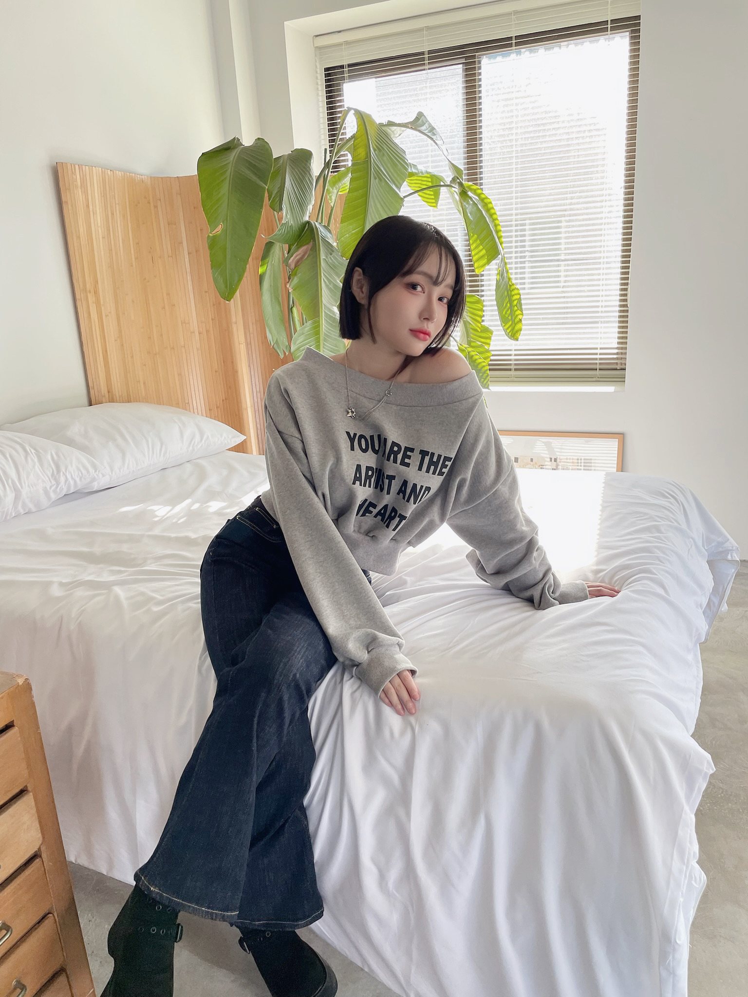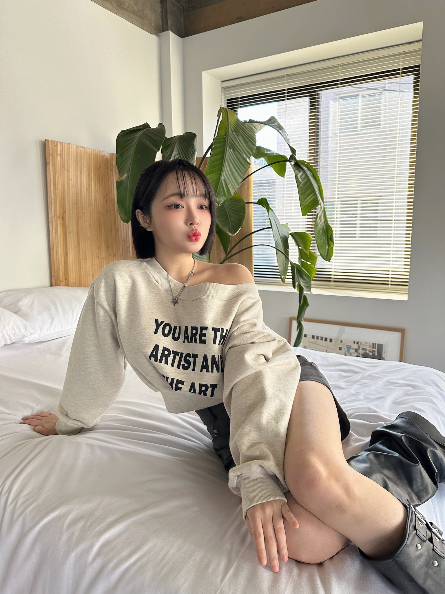 🇰🇷暗夜微夢闆娘愛款短版斜肩大學踢(燕麥/灰)
