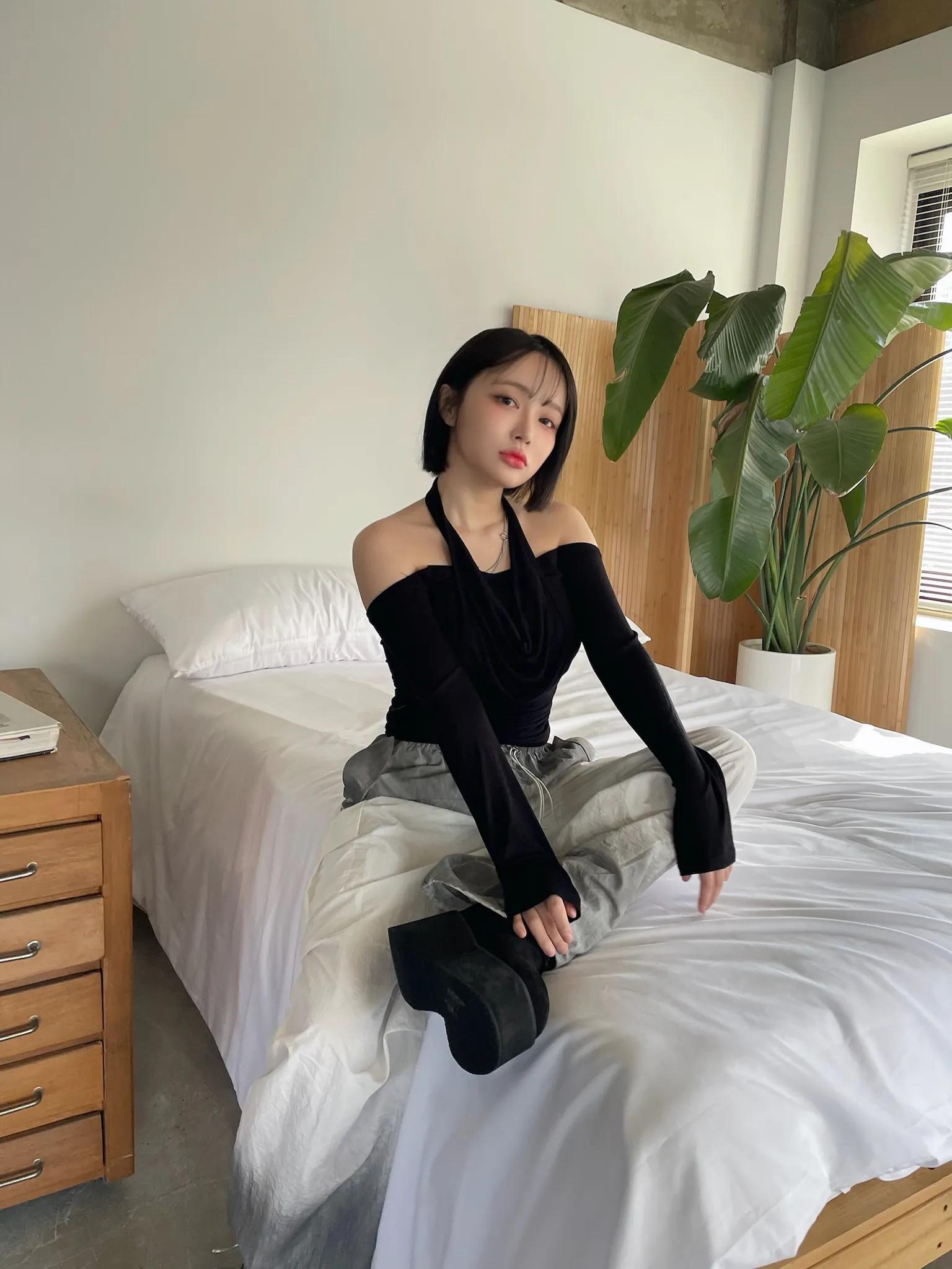 繞脖垂墜的設計超級美 可以拉成一字領 我覺得這樣穿搭是最美的!!!!!