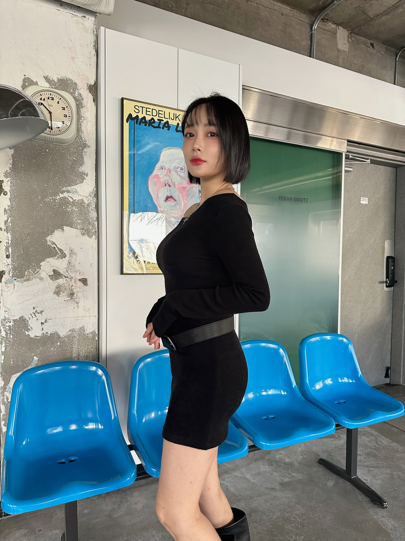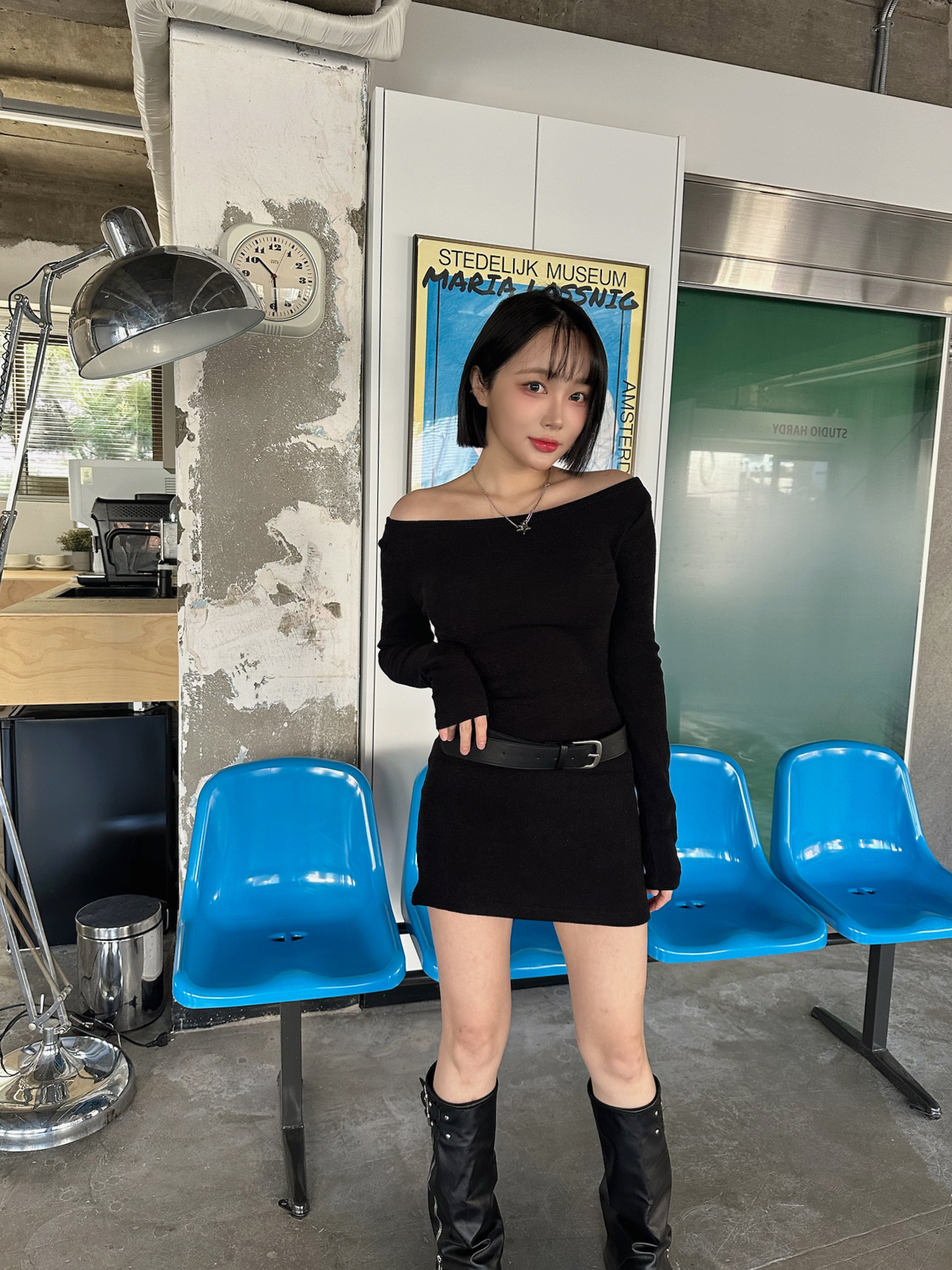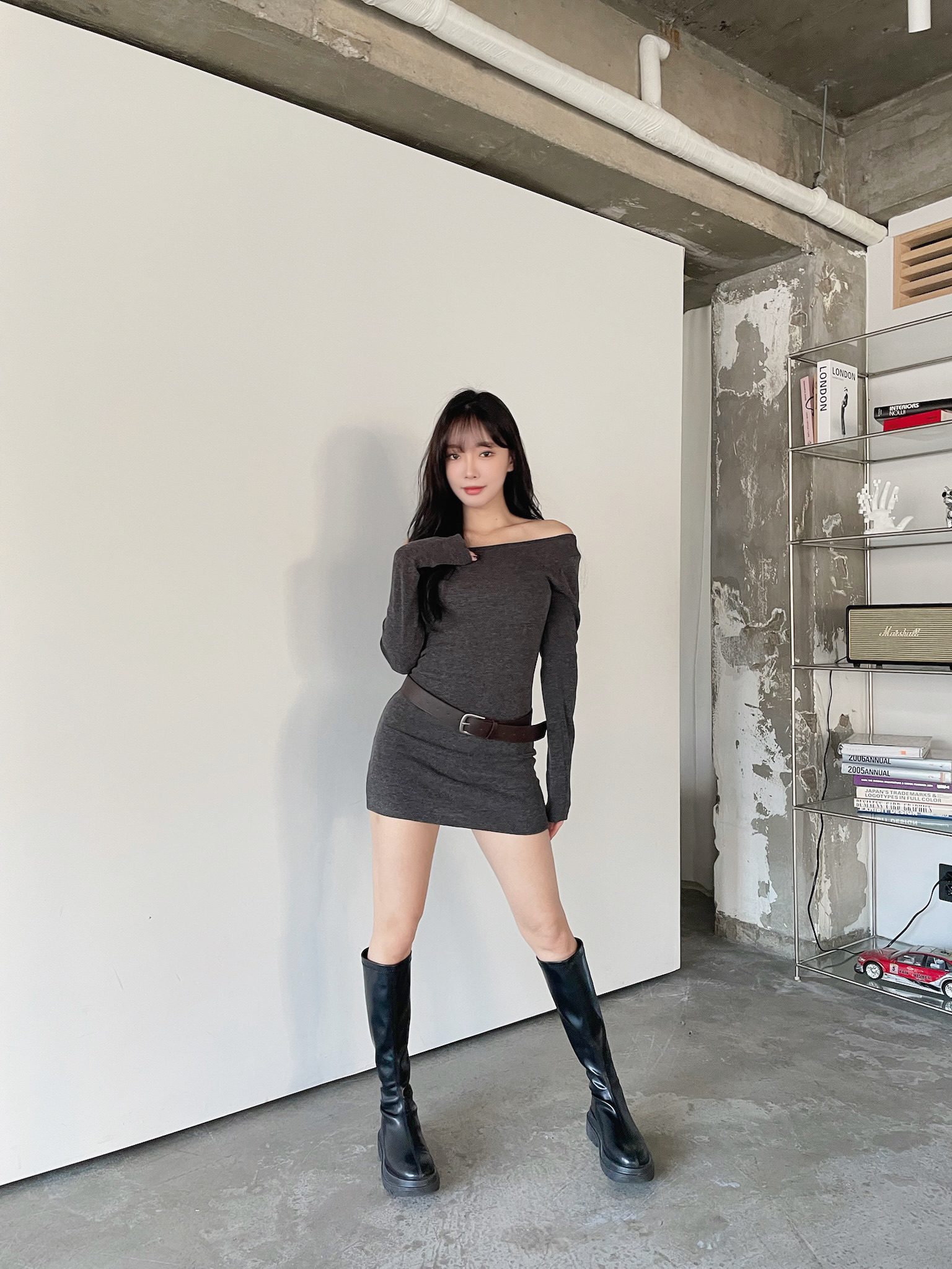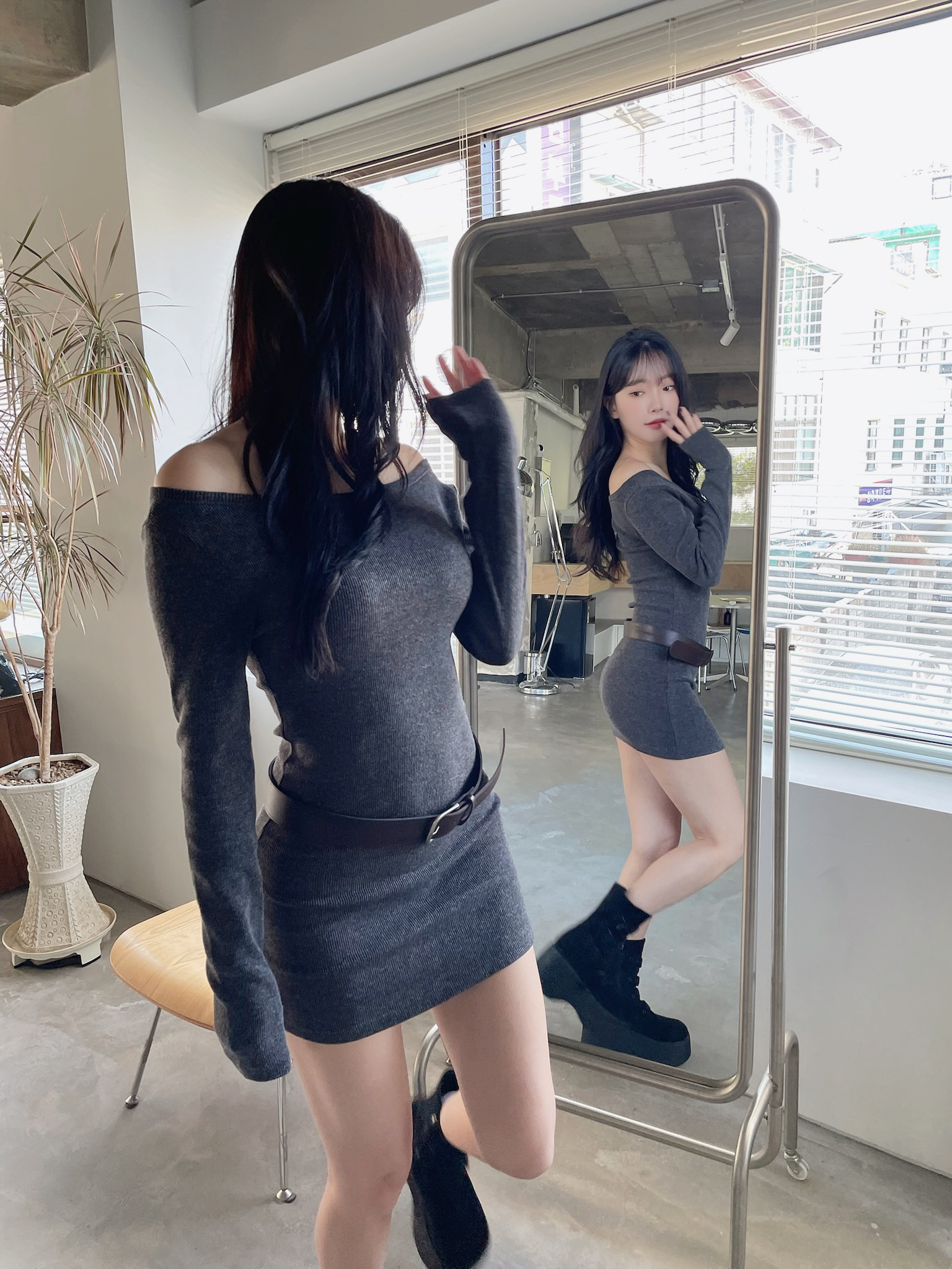 🇰🇷織骨之吻平口針織洋裝(附皮帶)(黑/灰)