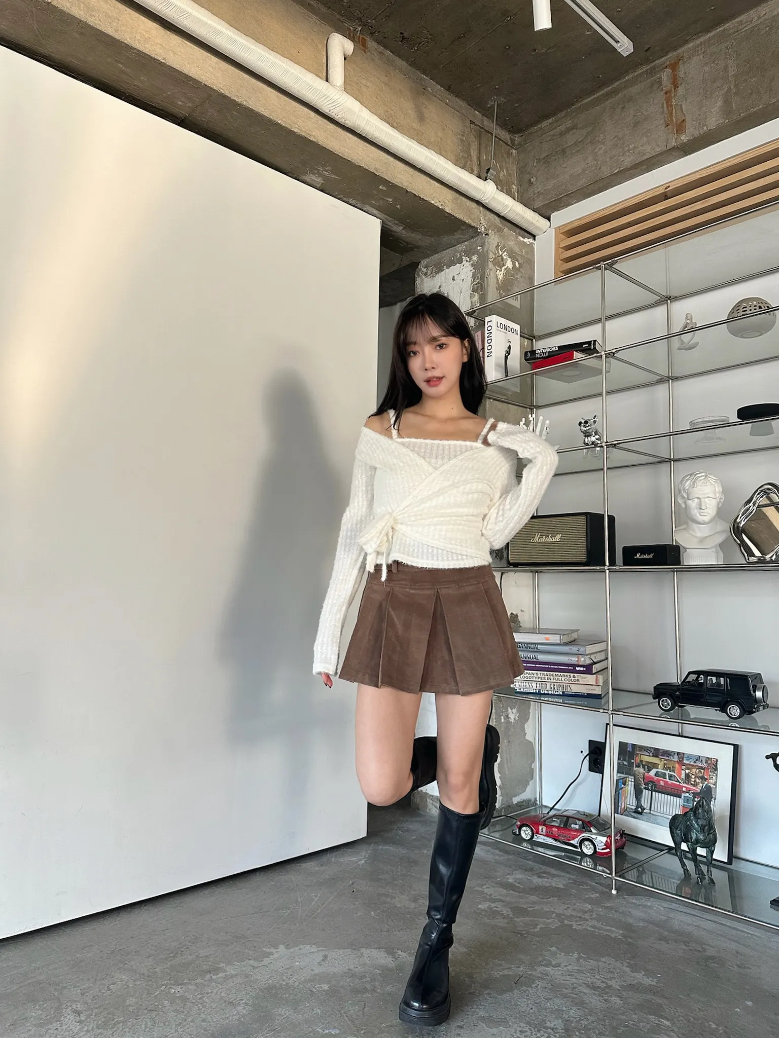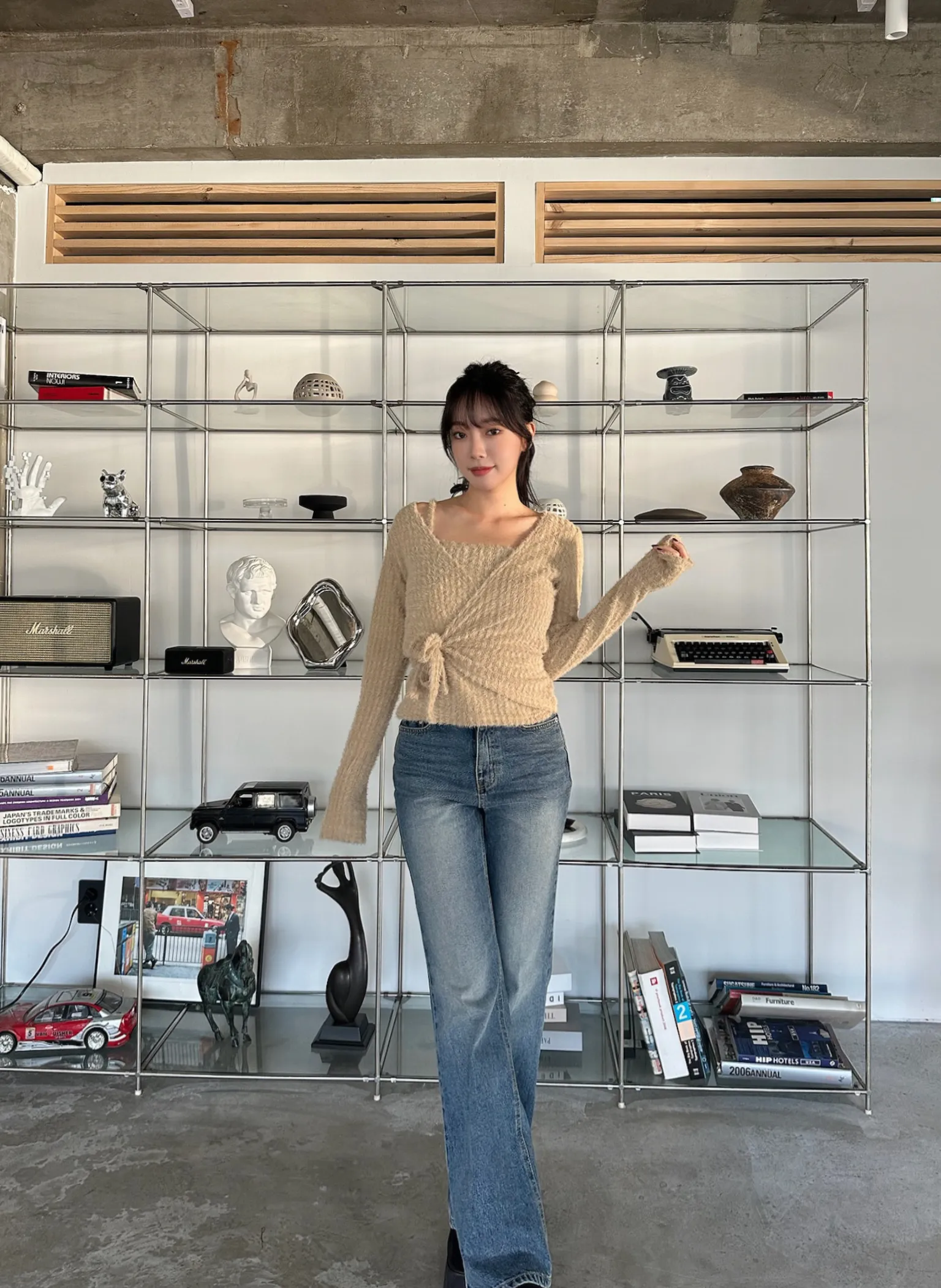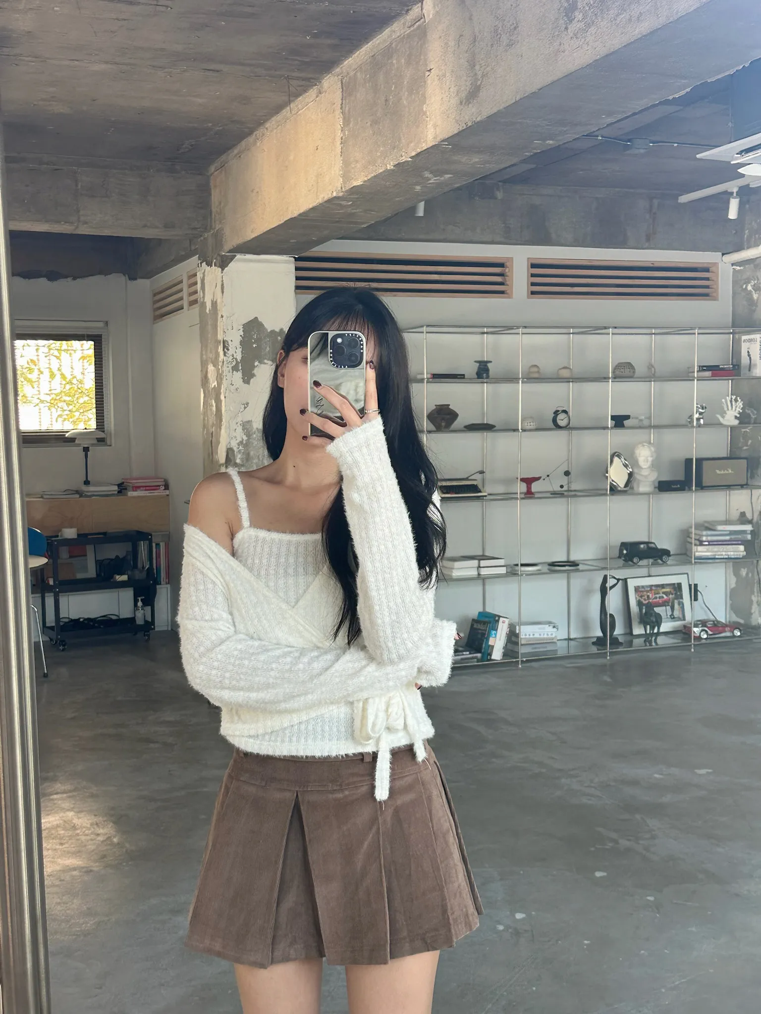🇰🇷薔薇之戀毛毛檔帶高CP兩件式綁帶上衣(白/杏咖)