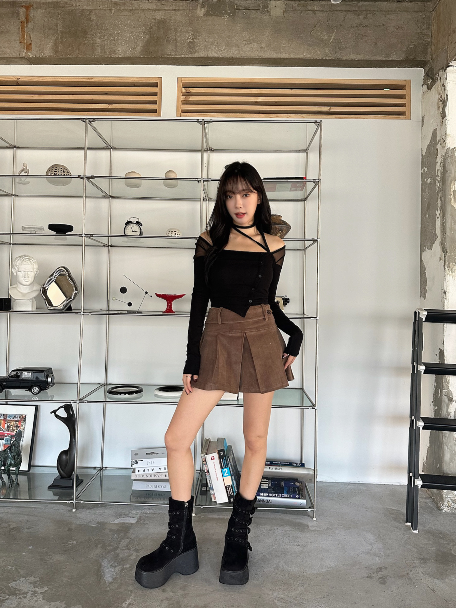 🇰🇷焦映暮光今冬流行美拉德燈芯絨百褶裙(內有安全褲)(S/M)