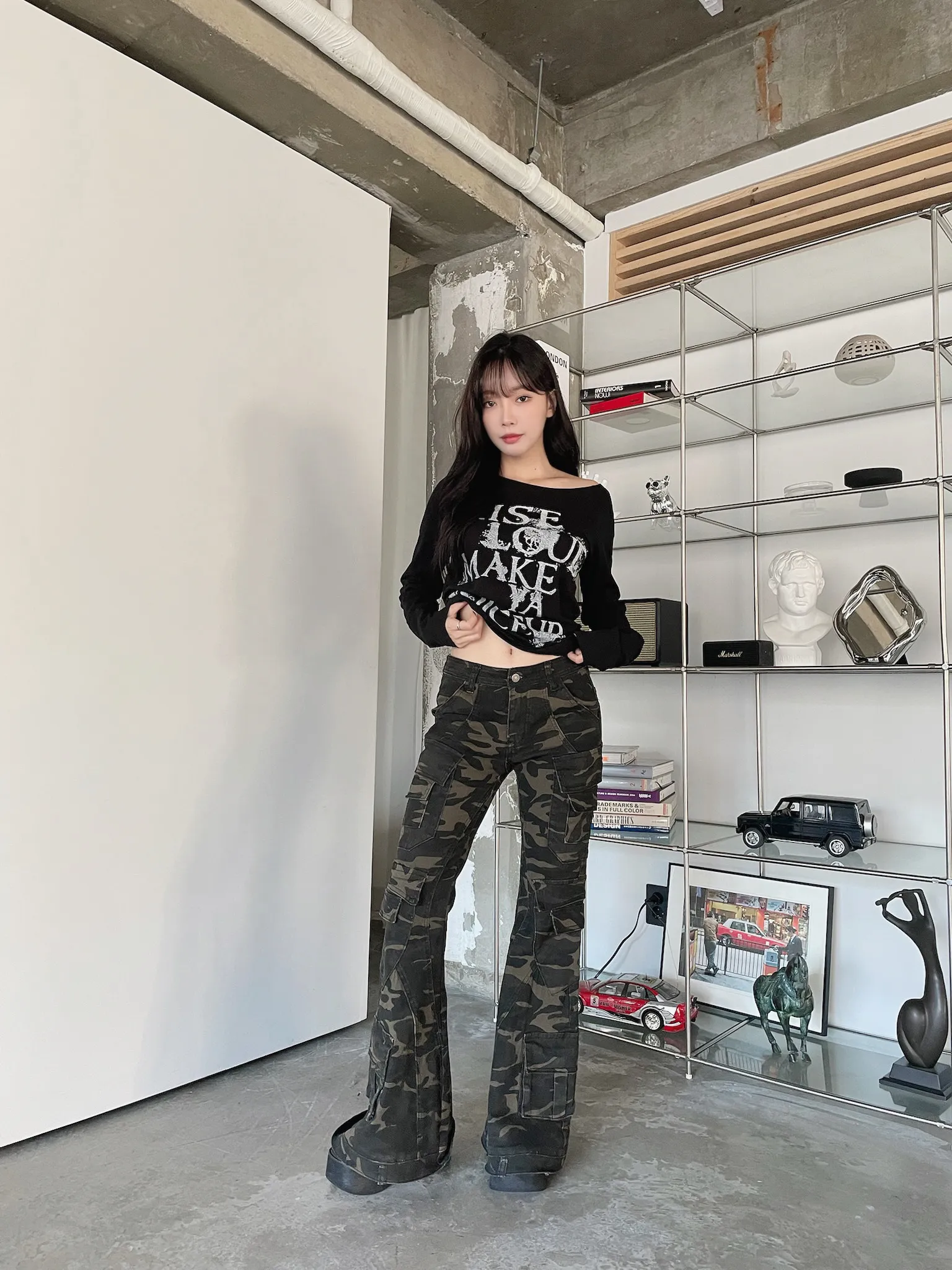 海西歐膩pick!!🇰🇷羽夜光影迷彩喇叭褲(S/M)
